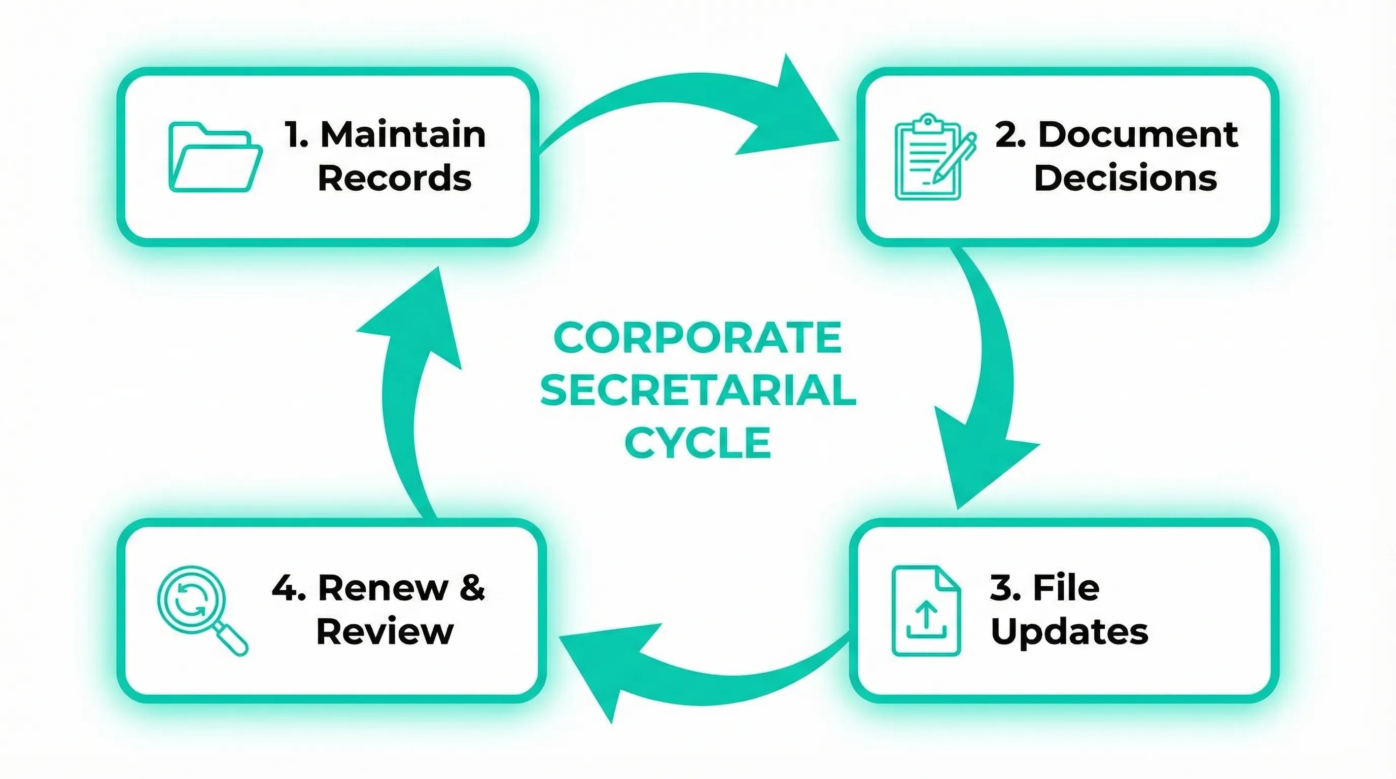 - Maintaining core corporate records (registers, resolutions, constitutional documents)