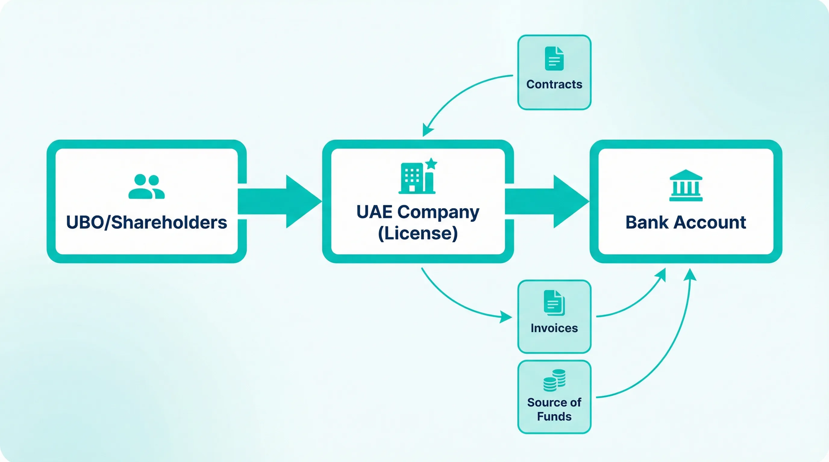 - Banks often look closely at where the business is actually conducted (UAE vs overseas) and how counterparties are contracted.