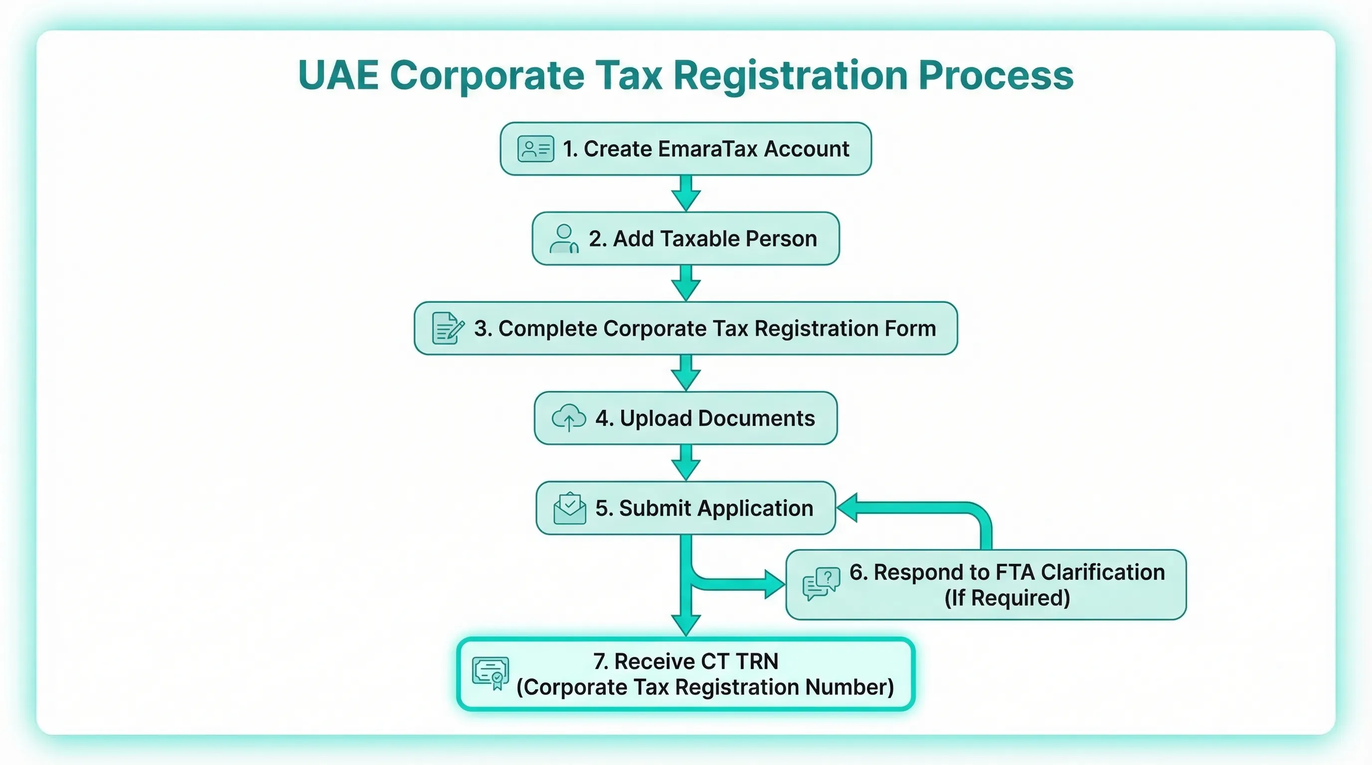 Corporate tax registration is the process of registering a taxable person (or a person required to register) with the FTA for UAE Corporate Tax, which results in the issuance of a Corporate Tax Registration Number (CT TRN).